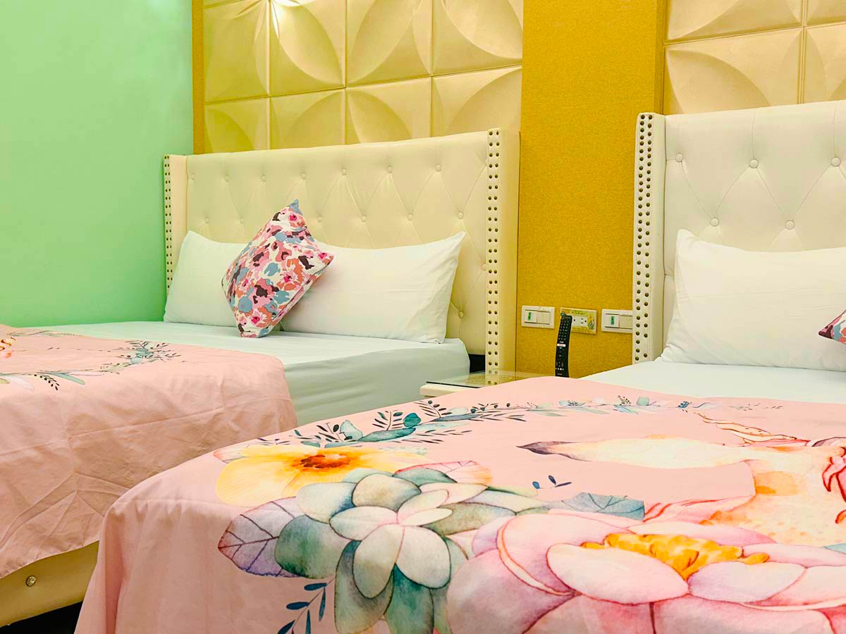 • 兩大床、分離式冷氣、液晶無線電視、吹風機、瓶裝水、免費無線WiFi、浴巾、洗髮乳和沐浴乳。